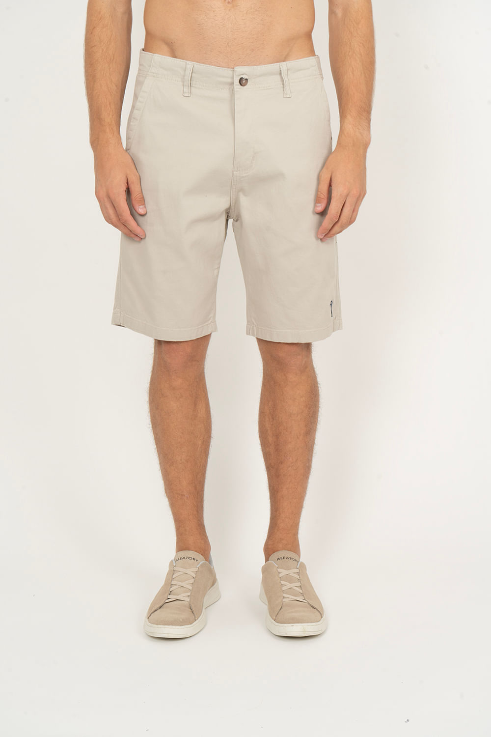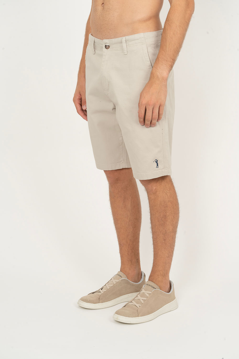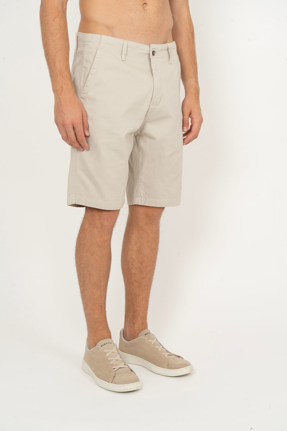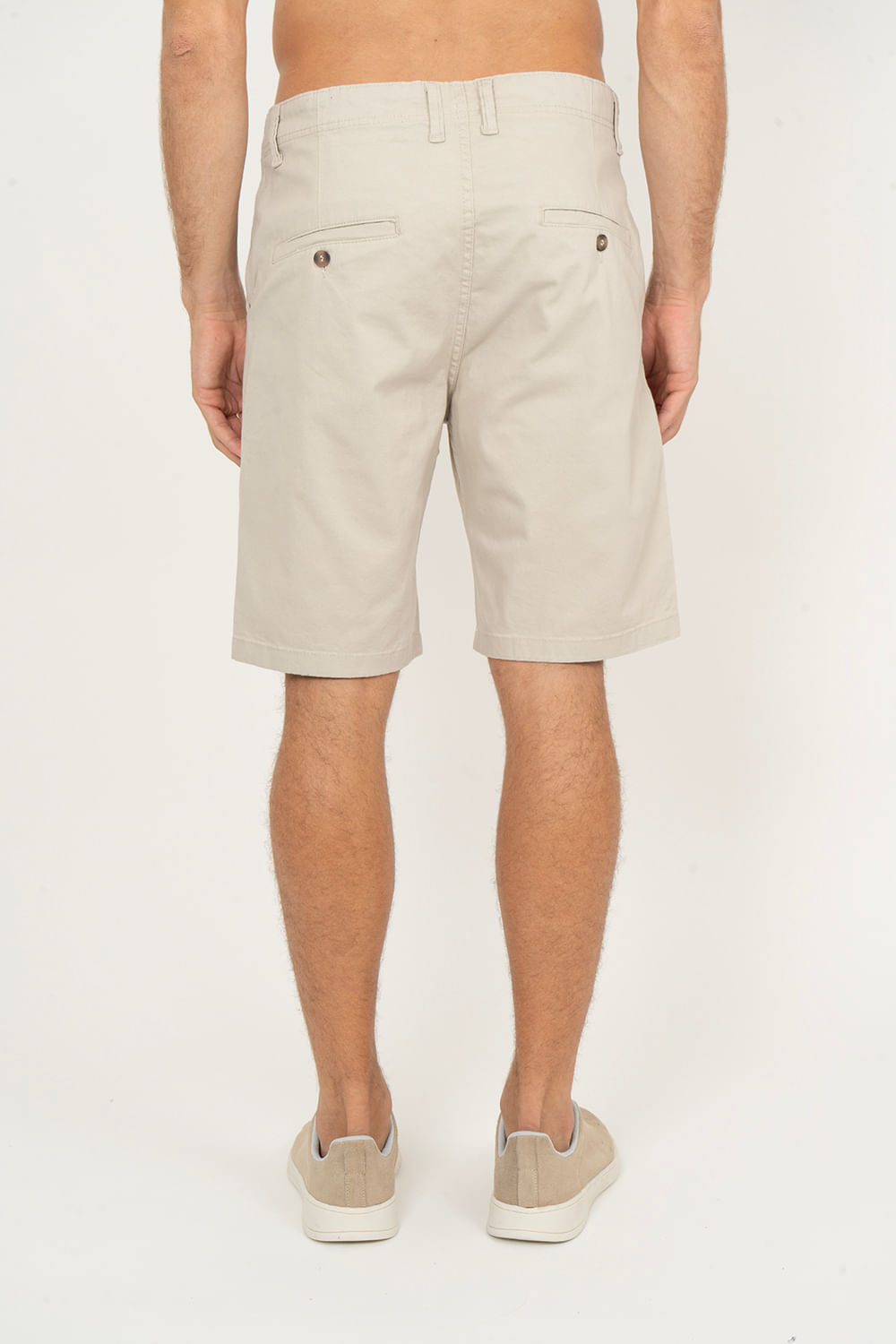 Tipo de produto: Bermuda Modelagem: Reta Fecho: Botão e Zíper Tecido: Sarja Cor: Bege 98% Algodão 2% Elastano